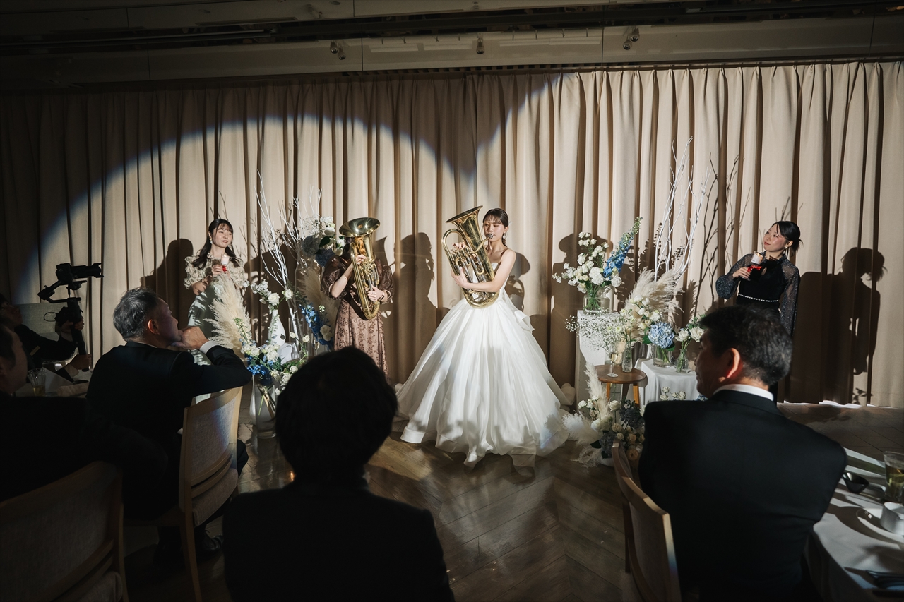 披露宴会場でパーティーが始まります