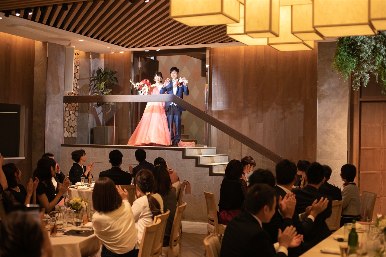 ピンクのドレスとネイビーのタキシードに変わり会場内もさらに盛り上がります