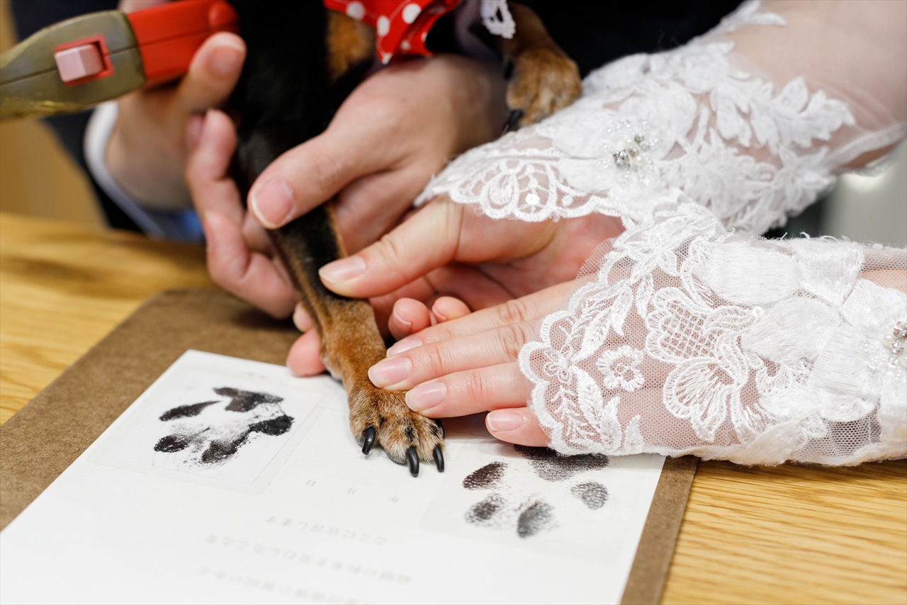 新郎新婦のおふたりがそれぞれの名前を書いて完成させます