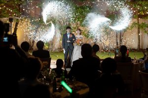 ナイトウェディングにキャンドルとおふたりの衣裳と