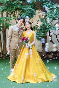 そしてご両家をイメージしてご用意した色ちがいの花束