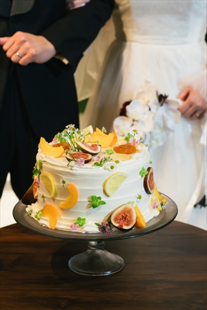 おふたりの元にはオリジナルのウェディングケーキの登場