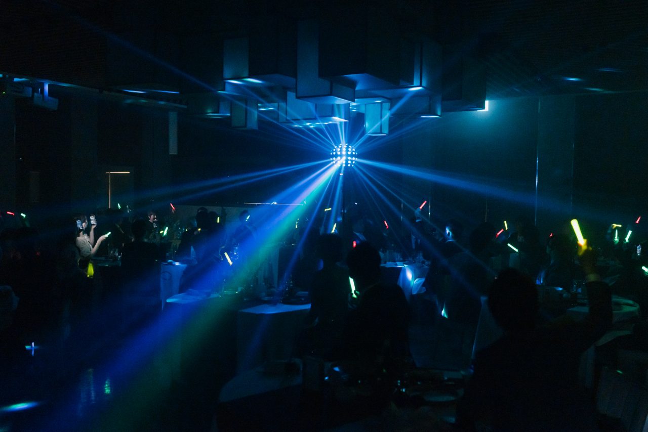よりミラーボールの光がゲストの近くで輝きを放ちます