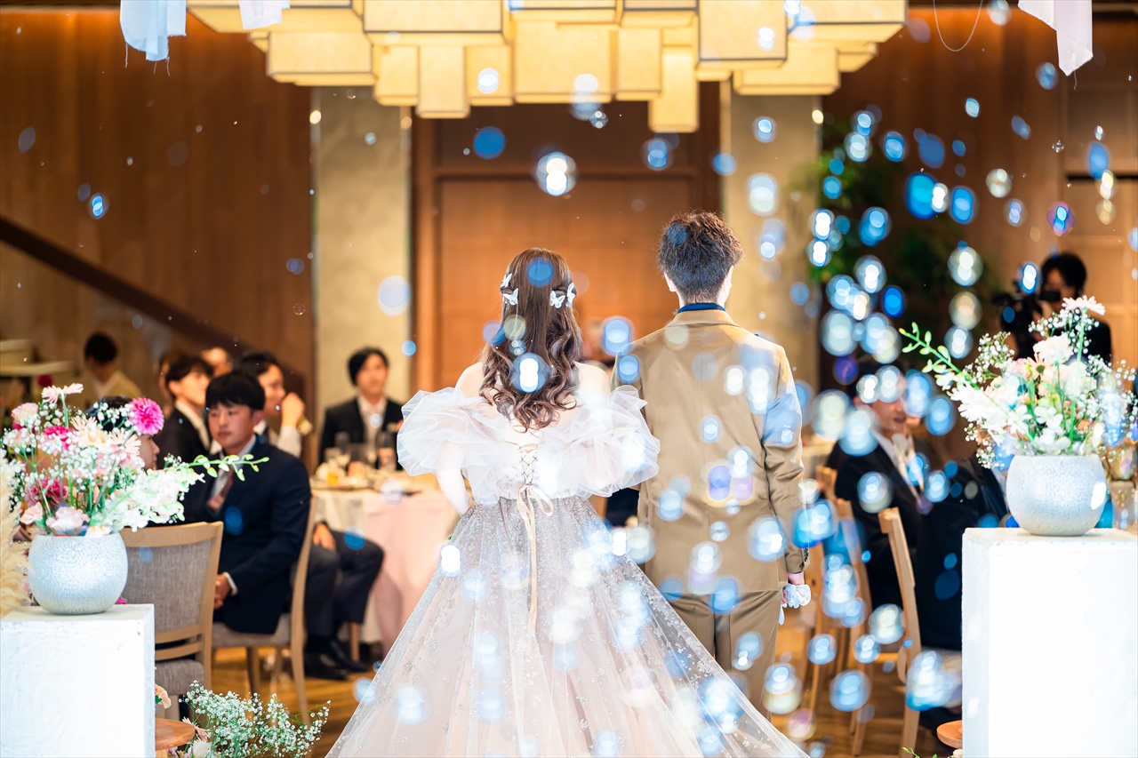 挙式会場でおふたりの幸せな晴れ姿を見て