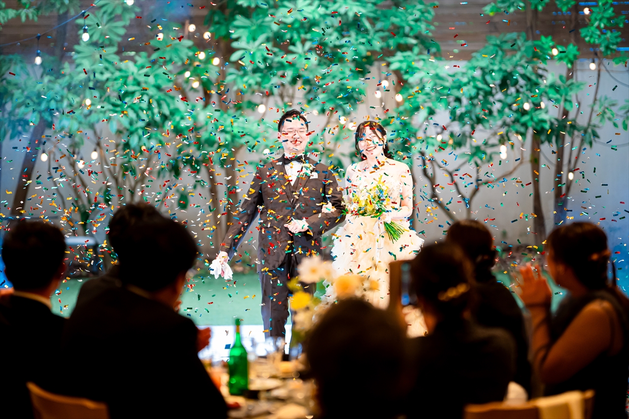 披露宴の入場はシャボン玉の中からおふたりがさわやかにご登場です