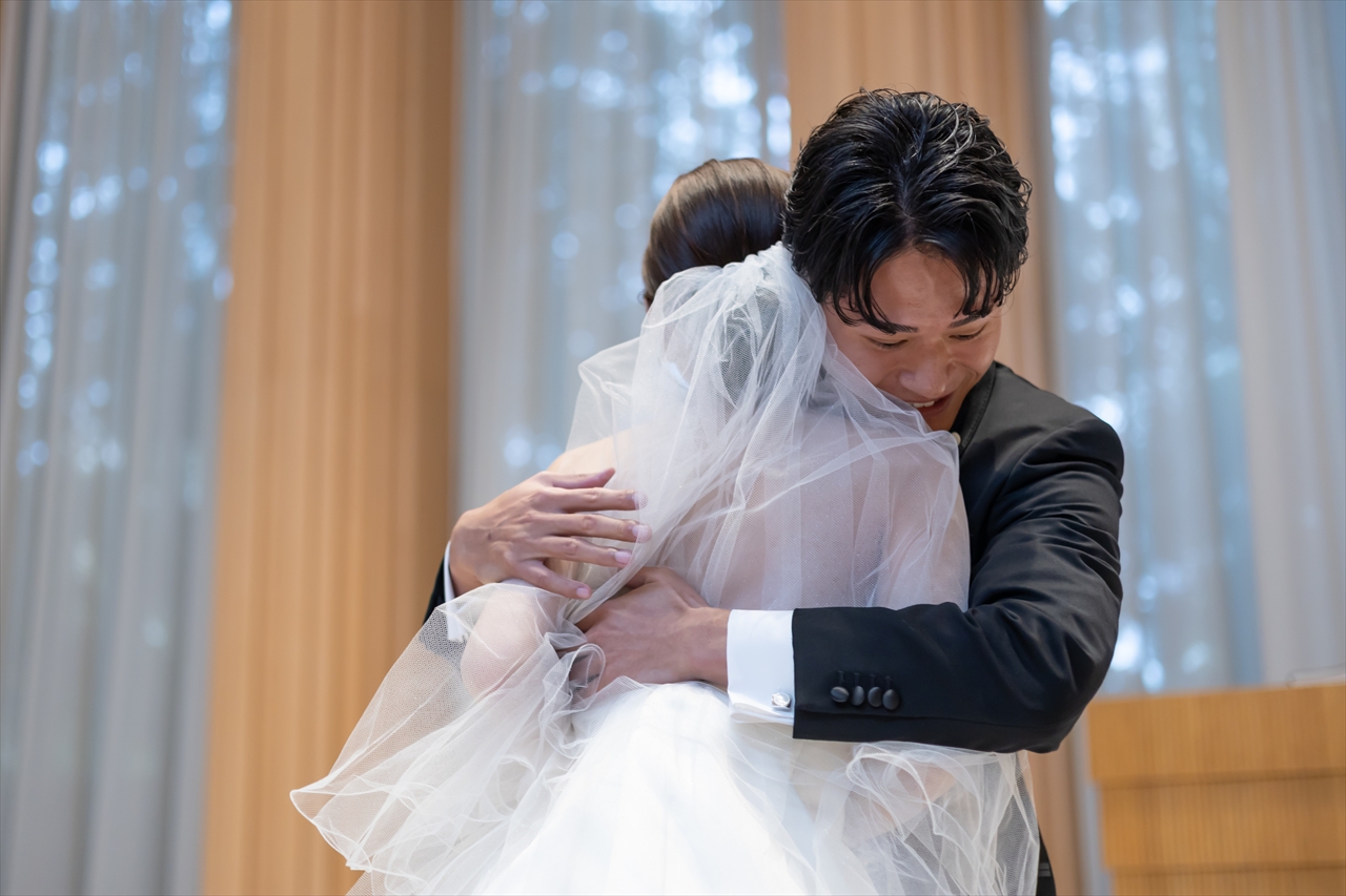 挙式前にご両家の親御様そしてごきょうだいや甥っ子さんにはおふたりの花婿花嫁姿をチャペルでご覧いただき