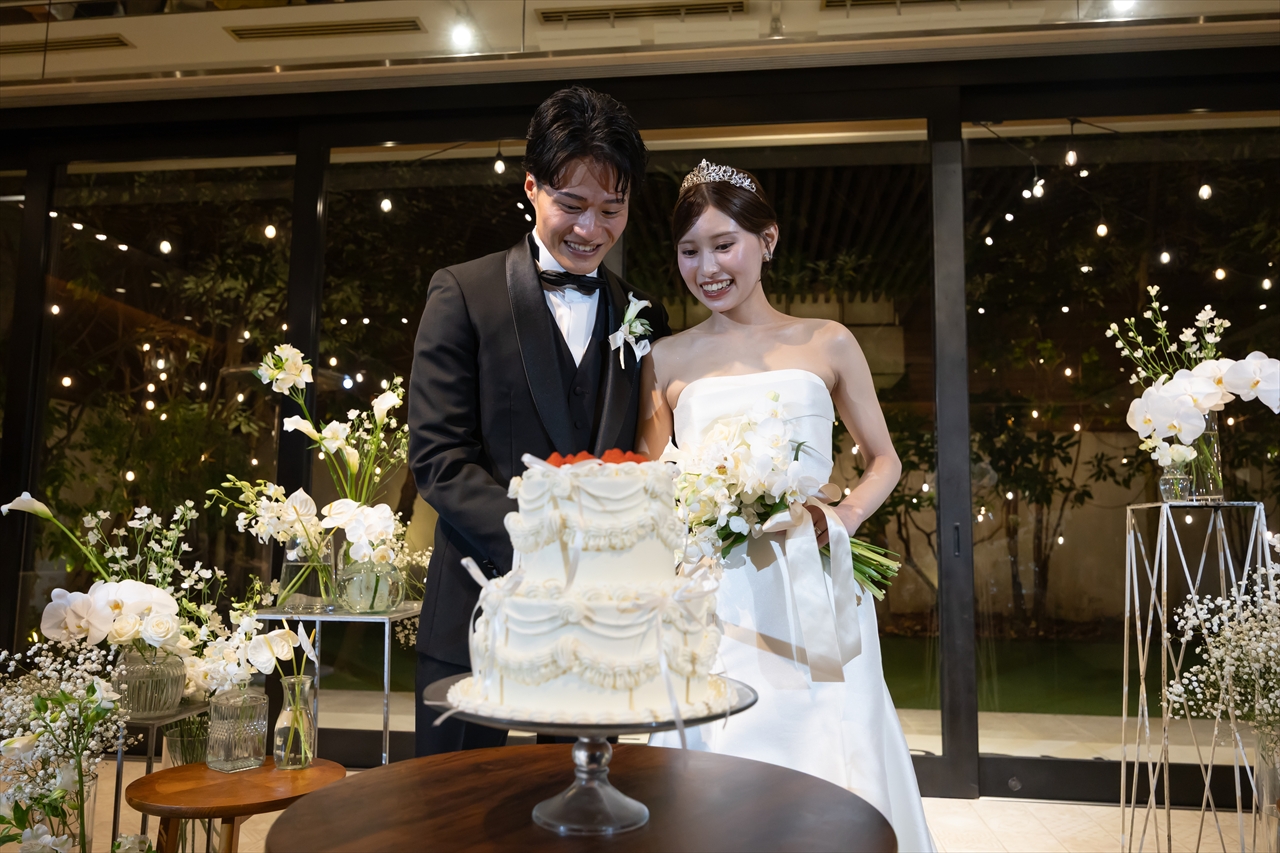 世界に一つだけのオリジナルのウエディングケーキ におふたりでご入刀です!