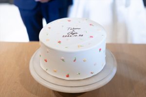 入刀後はおふたりで仲良く食べさせ合いっこ