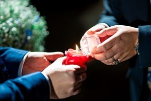 お互いのキャンドルを灯しキャンドルリレーを結ぶと