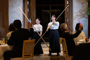 プランナーが新郎新婦のやっていた競技の道着を着て