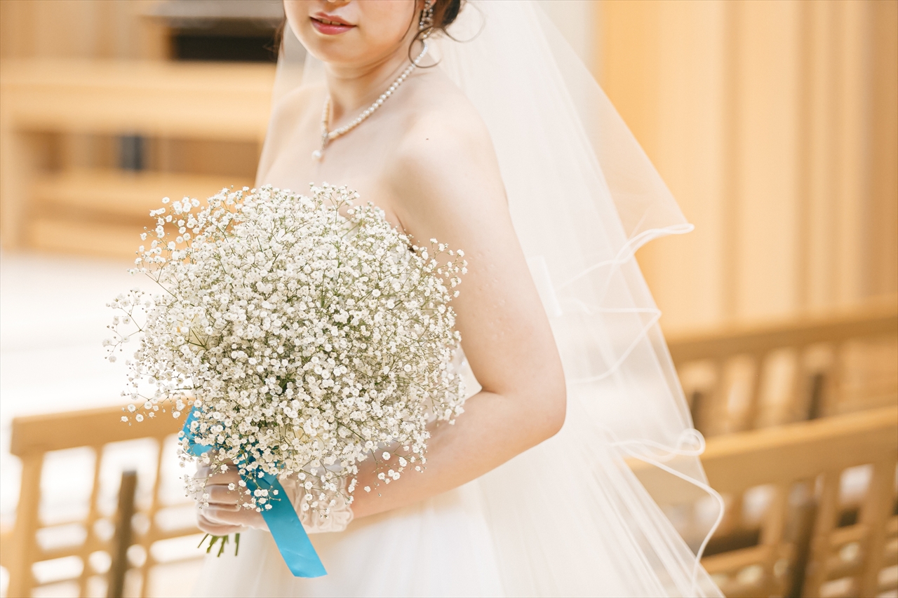 ブーケのお花やリボンにポイントでブルーを取り入れた方もいらっしゃいます。