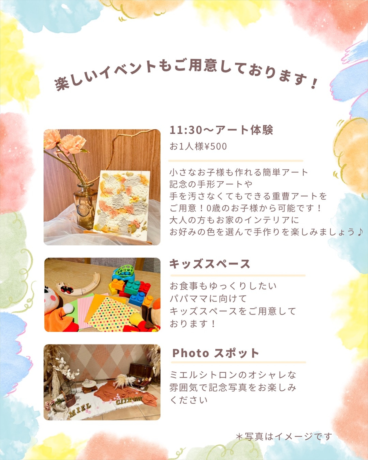 手形アートや手を汚さなくてもできる重曹アートをご用意♪