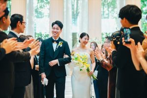 そして完成したブーケを持ってゲストの皆様が作る花道の中