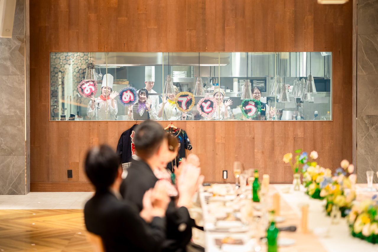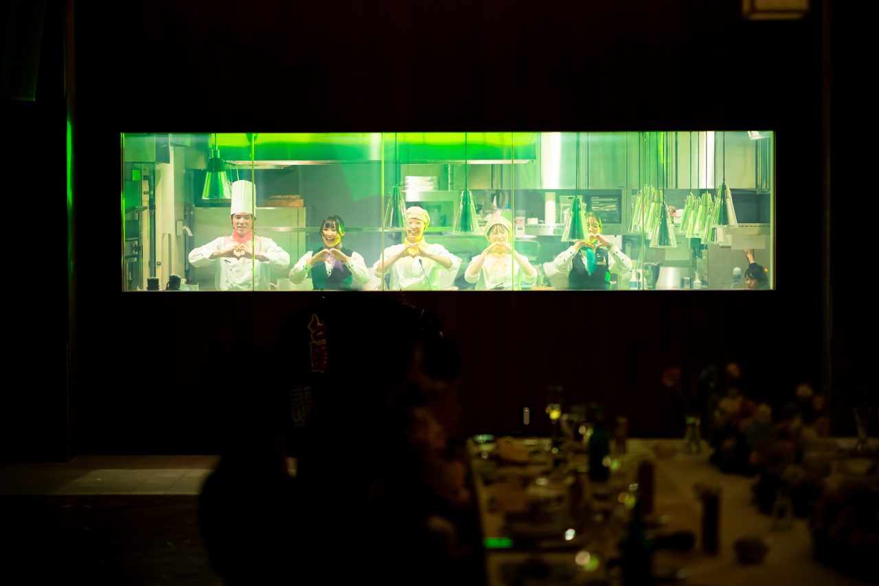 キッチンスタッフとサービススタッフがダンスでお祝いの気持ちを届けます